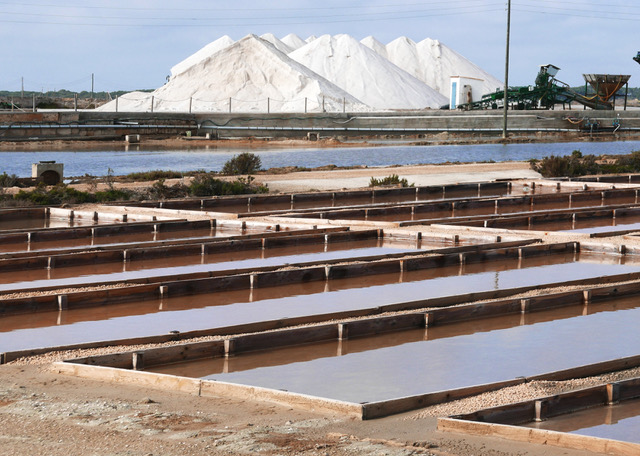 A photo of the saltern site in Spain where a significant portion of the research was done. A saltern is used to produce salt for human consumption and is a natural environment for Salinibacter ruber bacterium.