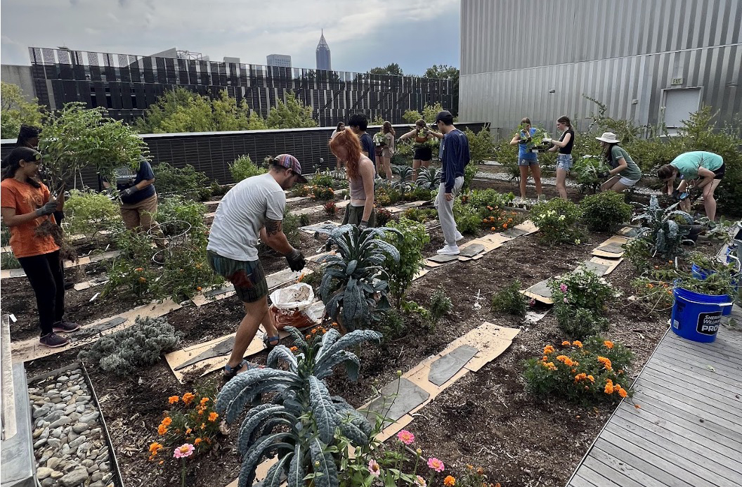 Students at the Kendeda rooftop garden
